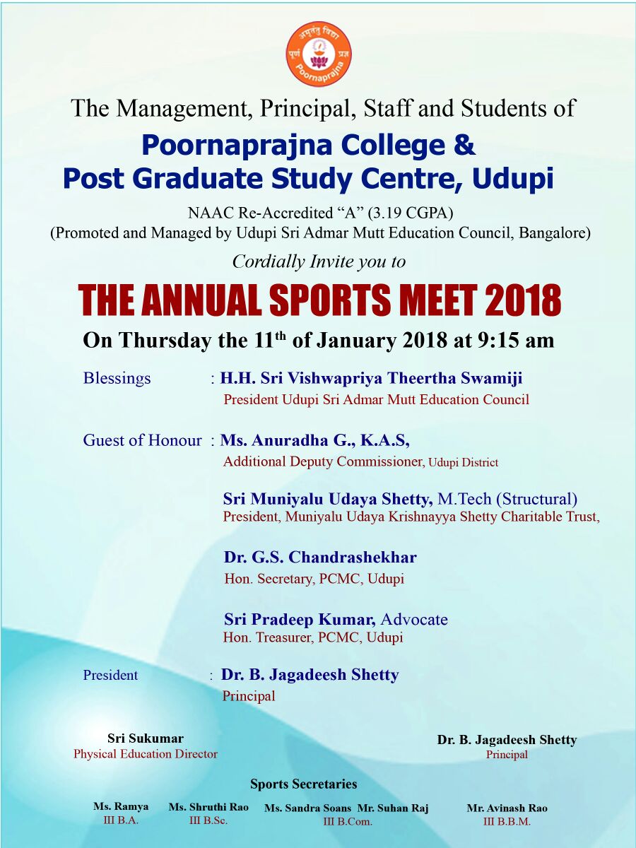 Poornaprajna College , Udupi -The Annual Sports Meet - 2018